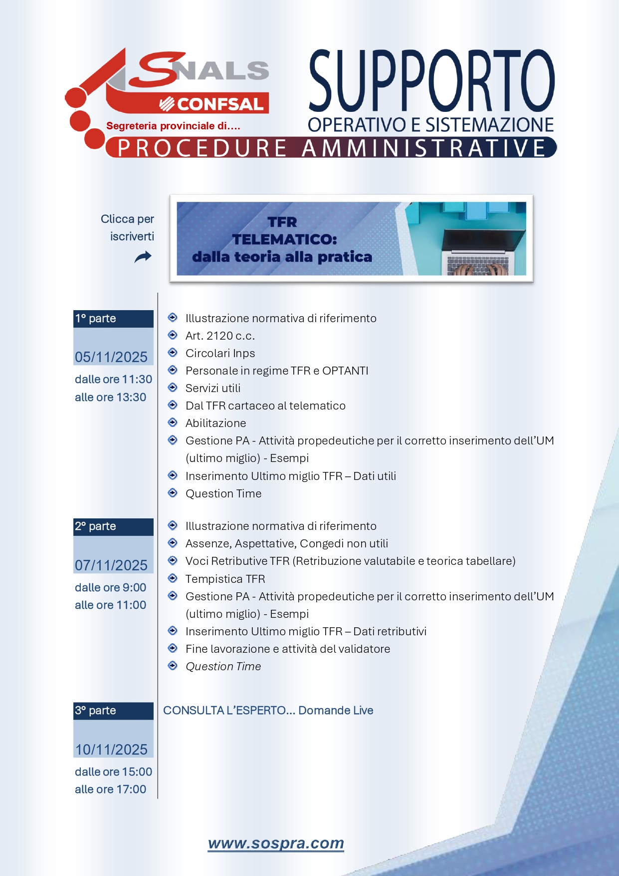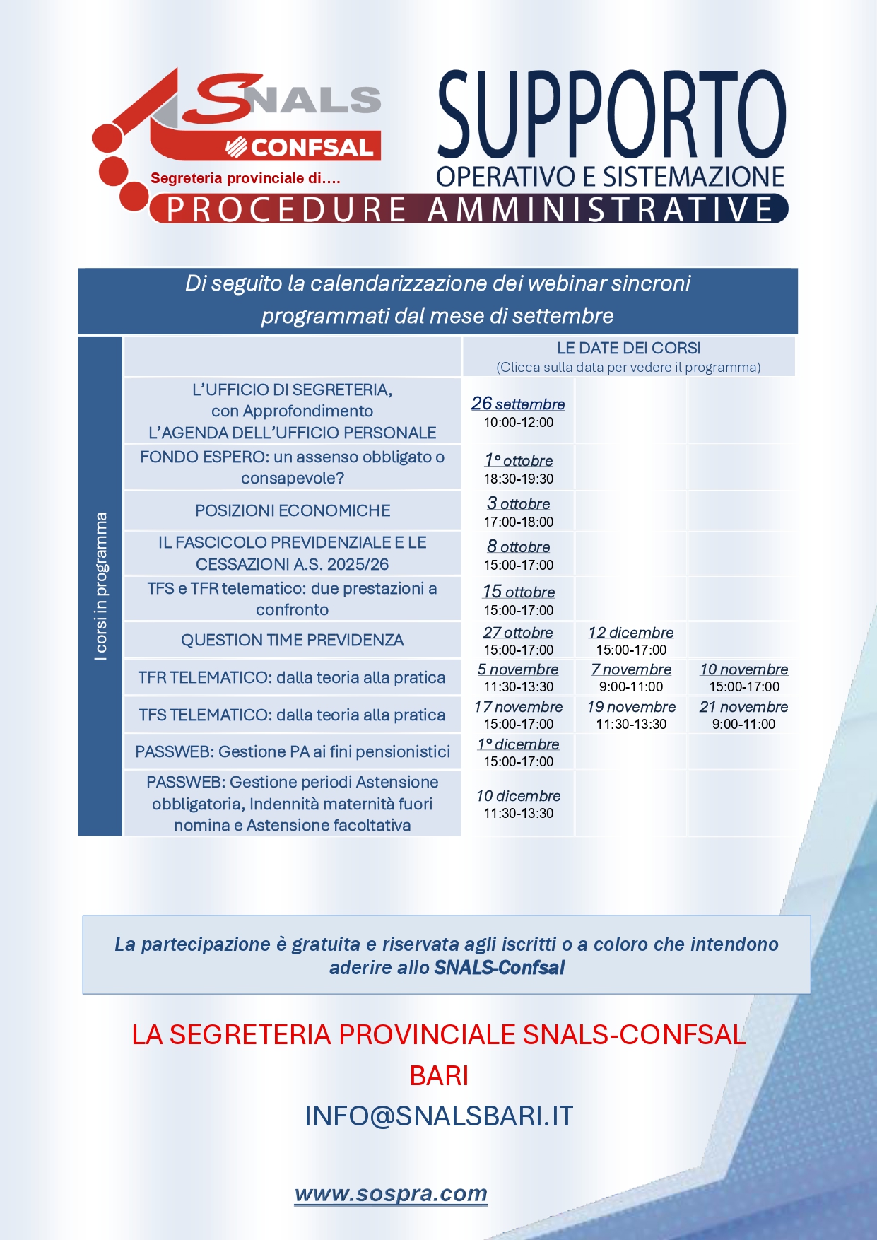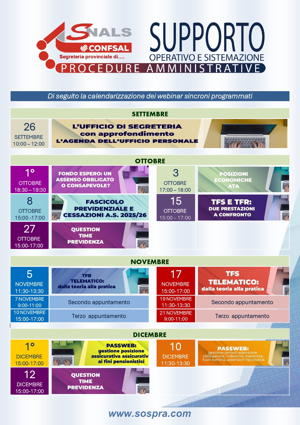 si terranno i primi due webinar gratuiti per RSU e TAS SNALS-CONFSAL dal titolo