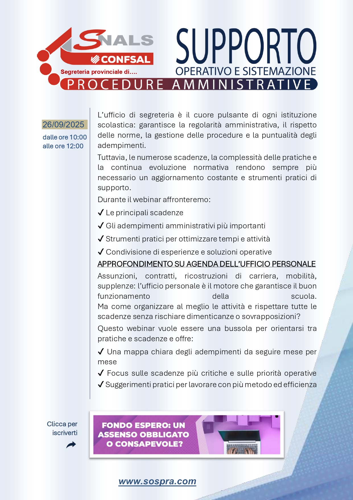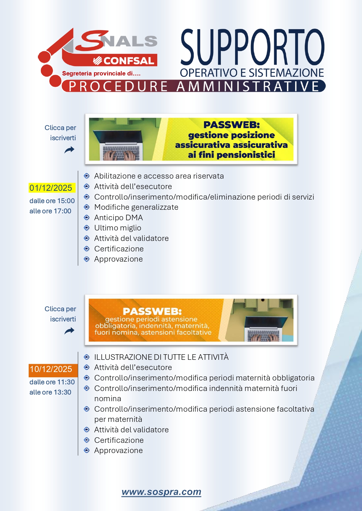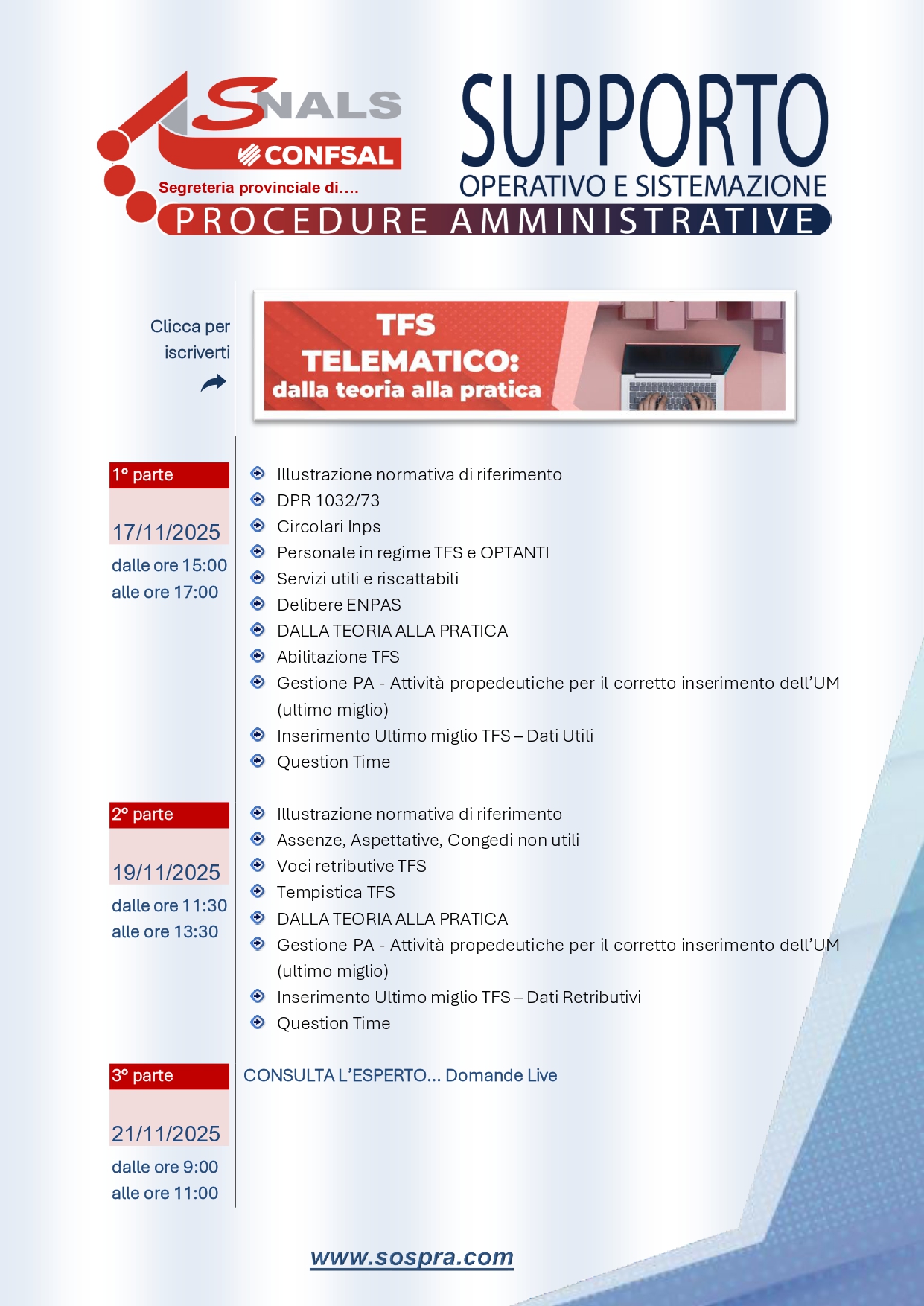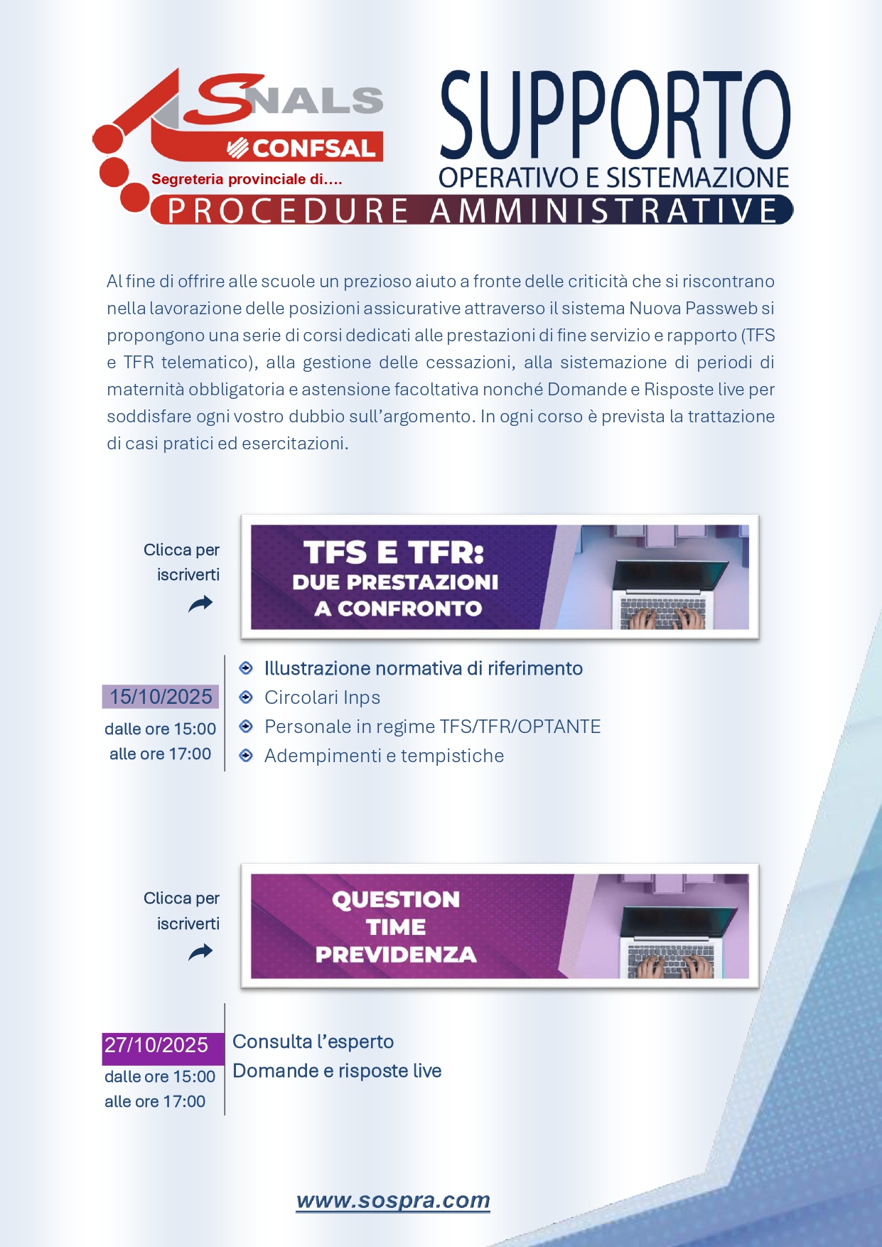 si terranno i primi due webinar gratuiti per RSU e TAS SNALS-CONFSAL dal titolo
