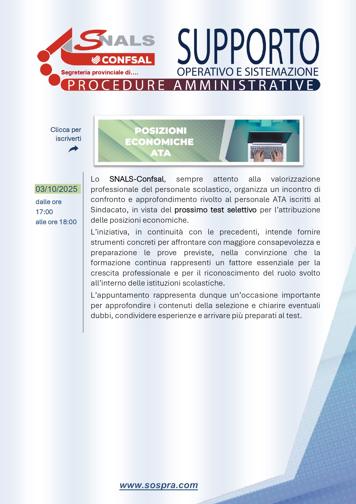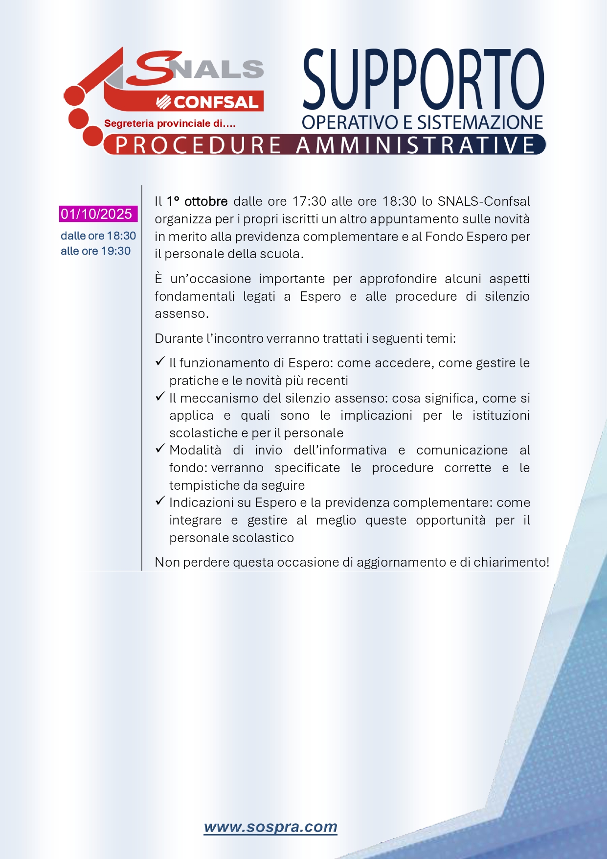 riservato al personale Docente ed ATA eletto RSU nella lista SNALS-CONFSAL e